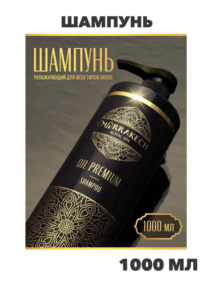Шампунь 1 литр OIL PREMIUM от M rrakech Royal SPA для волос и кожи головы – это гармония натуральных масел, созданная для бережного ухода за волосами. Шампунь без силиконов имеет высокую биодоступность, обеспечивает эффективную передачу нутриентов коже головы и волосам. Благодаря отсутствию пленки из силикона, ухаживающий шампунь передаст полноту пользы натуральных компонентов по всей длине. Состав восстанавливающего шампуня OIL PREMIUM – это классическая формула ухода за волосами восточных красавиц. Один из базовых компонентов уходового средства – драгоценное масло арганы первого отжима. Косметическое аргановое масло – бесценный подарок женщине от самой природы, благодаря высокой концентрации витаминов, минералов и антиоксидантов оно интенсивно питает кожу головы, снижает ломкость волос, придает им блеск, увлажняет и восстанавливает поврежденные локоны. Масло черного тмина регулирует выработку кожного сала, успокаивает кожу головы.