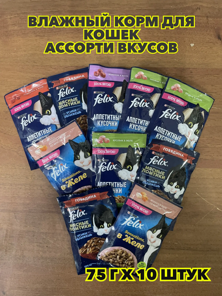 Влажный корм Felix 75гх10 штук, для кошек Ассорти Вкусов, n4433-349310